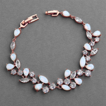 Mariell's Unique 14K Rose Gold Cubic Zirconia Tennis Bracelet Adds Glamorous Styling to Weddings or Everyday Wear; Delicate Clusters of Pear and Round Shape CZ's Will Dazzle Any Special Occasion; 7" Long and 5/16" Wide, Includes 3/8" Extender for a Perfect Fit.