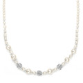 Description: Mariell's popular wedding necklace features a lovely blend of assorted sized pearls highlighted with shimmering Austrian crystal rhinestone fireballs