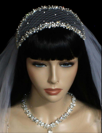 Noelle & Ava Collection - Tulle 3.5"x 19" hair wrap of rhinestone scattered flower patterns on rhinestone waves - 28